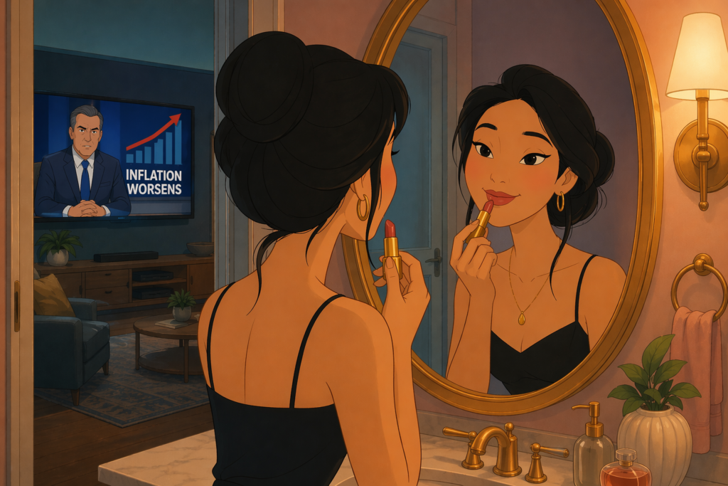 Consumers cut back in many areas while continuing to spend (often even spending more) on small indulgences. Like lipstick and other cosmetics.